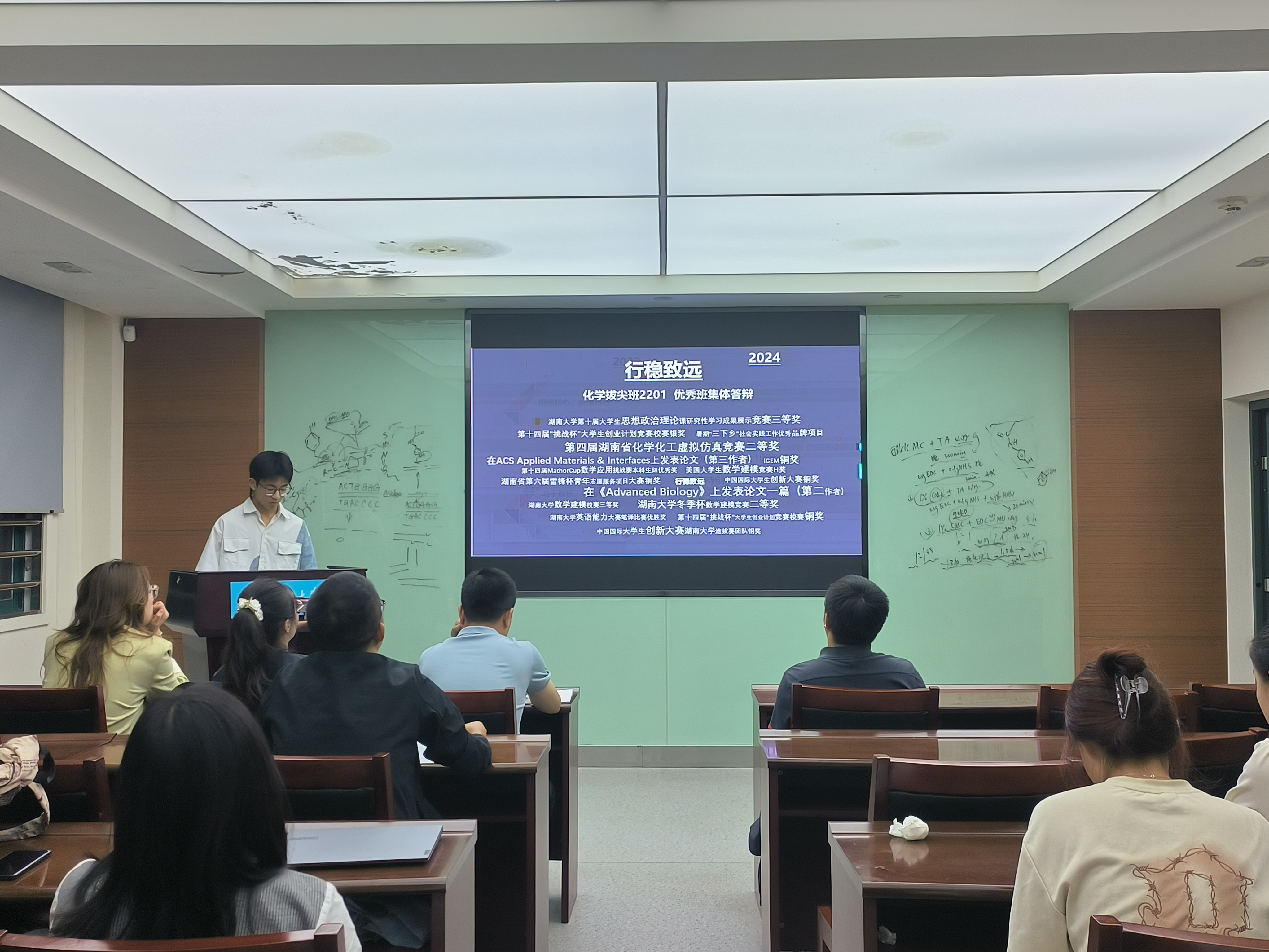 2024 年 10 月 10日,永利集团248cc登录本科优秀班集体答辩在新化工楼B106顺利举行。化学拔尖班2201班班主任朱智强、化工2303班班主任杨坤及全体本科生辅导员参与。