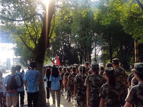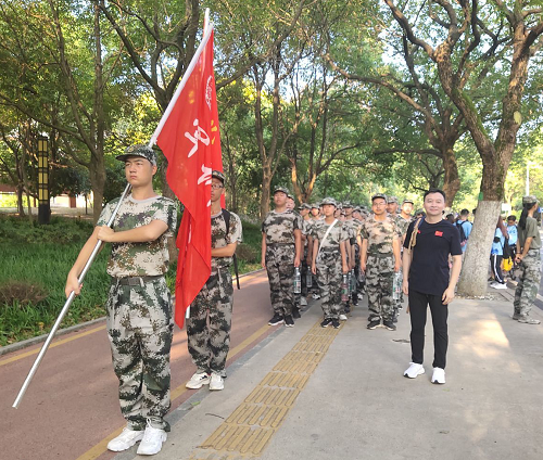 上午七点前,全体新生在荫马塘集合完毕。永利集团248cc登录承担了本次拉练为全营带队并保管营旗的任务,在完成旗手的选拔后,跟随者鲜红的旗帜,新生们迎着一轮旭日正式出发了。全体新生在教官的组织下成三列纵队前进,沿着校内的道路走到湘江边,感受着朝阳的力量,向着目的地李自健美术馆进发。每个营之间首尾相接,沿途时常有不同排面及不同营之间的拉歌,为辛苦的拉练增添了许多欢乐。而在此过程中,有部分同学因身体原因渐渐跟不上队伍,但他们依然坚持着走完全程,学校也在沿途设置了多个医疗救护站点,保证能够及时为身体不适的新生提供帮助。最温暖的一幕是无论哪个学院的新生身体出现不适,其他院的学生助理及老师看到了都会上前关心慰问,及时提供力所能及的帮助,保证不让任何一个新生落单。化工院党委副书记潘刚峰老师也全程陪着大家一起拉练,和大家一起感受拉练的汗水与魅力。抵达目的地后返程的途中,同样的风景也有了不同的样子,连风的脚步都更轻快了。
