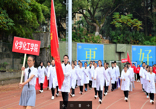 随后,青春活力的健美操、美轮美奂的拉丁舞、精彩绝伦的武术以及不少学生社团的表演等将整个开幕式推向高潮。而在庄严的升旗典礼后,向大家走来的是各学院的学生代表方队。化工院方阵的同学们踏着整齐划一的步伐向大家走来,他们高举着院旗,用洪亮的声音高喊化工院的口号“化工化工,谁与争锋”,以抖擞的精神面貌接受主席台上的校领导们以及全校师生的检阅。他们身上穿的实验服,是化工学院的标志。那不仅表现出他们严谨认真的学习态度和实事求是的科研精神,也彰显了化工院浓厚的学术氛围和深厚文化底蕴。方阵的形象代表着整个化工院的形象,而化工院的全体师生也必将用努力与奋斗继续书写属于他们的光辉院史!