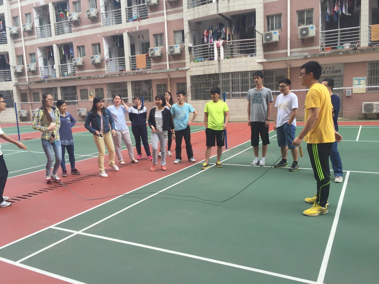 第二项是集体跳绳,虽然要求十分简单,看哪一个班级在五分钟之内跳的人次最多,十分考验团队合作。计时开始,同学们的热情被点燃了,积极投入比赛中,从刚开始的不熟悉到抓住节奏,同学们个个身轻如燕,快速的通过了一个又一个,活动达到高潮。到比赛后一分钟,有的同学已经疲惫,失误发生,仍然坚持下去。最终化工1401班完成150个,化工1403班完成130个。