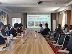 图为 戈明敏、杨艳霞、何张龙同志作汇报以及双方支部交流学习