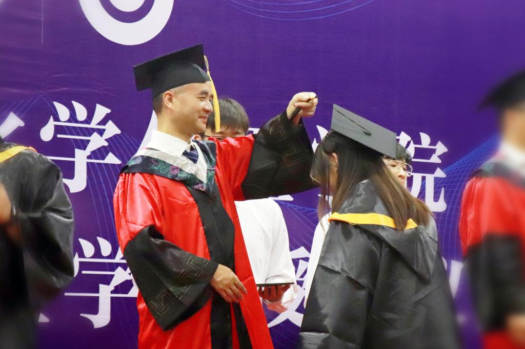 随后,副院长李永军教授宣读《关于2023届本科毕业生学士学位授予的决定》;副院长赵万祥教授宣读《关于2022-2023学年度博士、硕士学位授予的决定》。学位授予环节,毕业生们依次走上主席台,双手接过学位证书,主礼教授们为毕业生们拨转流苏、授予学位,为同学们在永利集团248cc登录的这一段旅程,画上完美句号。