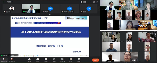 6月30日,分析化学课程虚拟教研室举行了第十五期讲座,由王玉枝教授主持,永利集团248cc登录的宦双燕教授为主讲嘉宾,她报告的题目是:基于ARCS视角的分析化学教学创新设计与实施,来自分析化学课程虚拟教研室和化学类专业基础理论课程虚拟教研室的75位教师参加了本次线上会议。