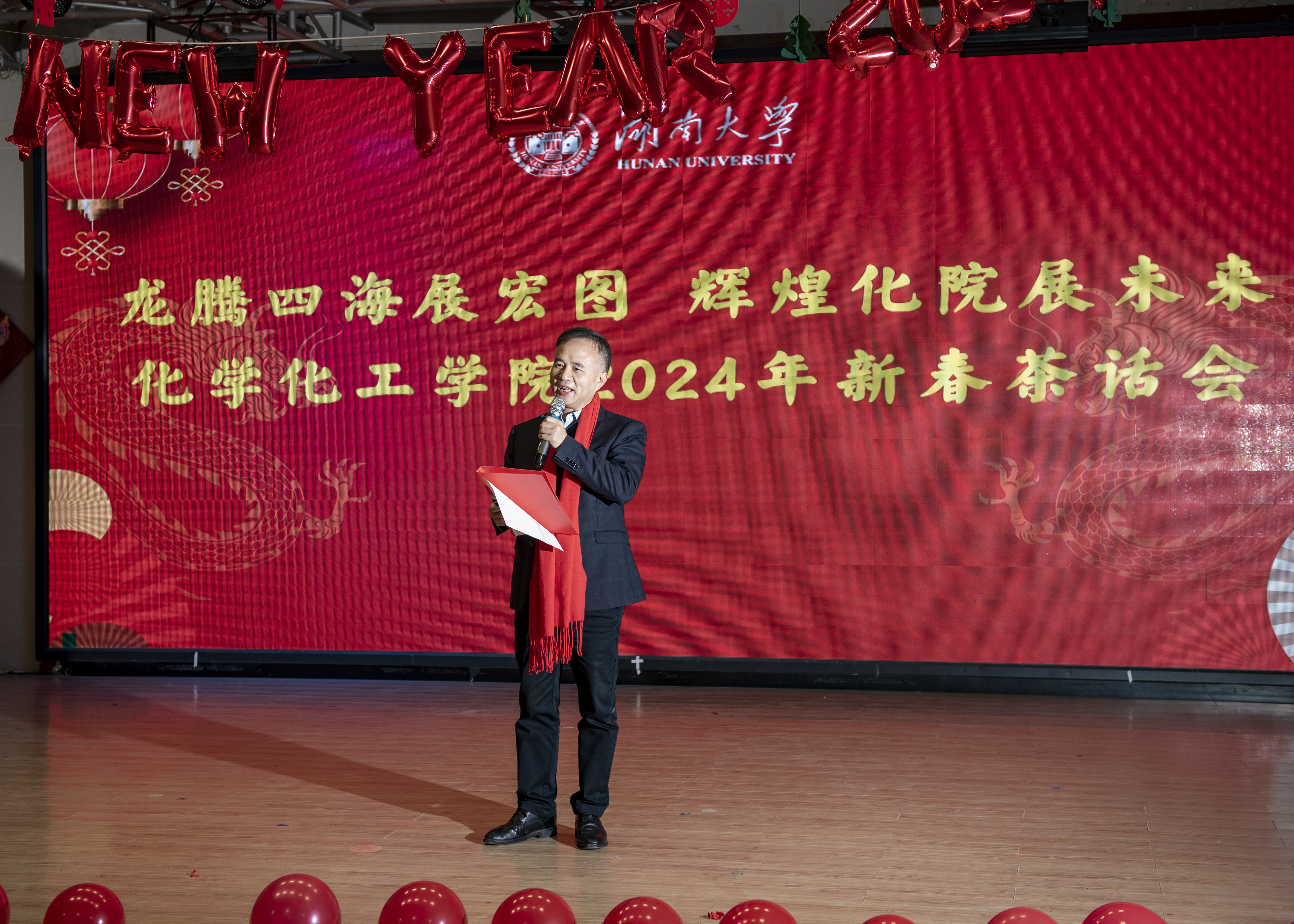龙腾盛世歌新岁,辉煌化院展宏图,永利集团248cc登录永利集团248cc登录于2024年开春之际举行了一场精彩纷呈的新春茶话会。中国科学院院士谭蔚泓,原湖南省人大常委会副主任、原永利集团248cc登录校长、永利集团248cc登录永利集团248cc登录创院院长王柯敏、永利集团248cc登录永利集团248cc登录院长张晓兵、党委书记王双印和师生代表200余人欢聚一堂共庆新春。