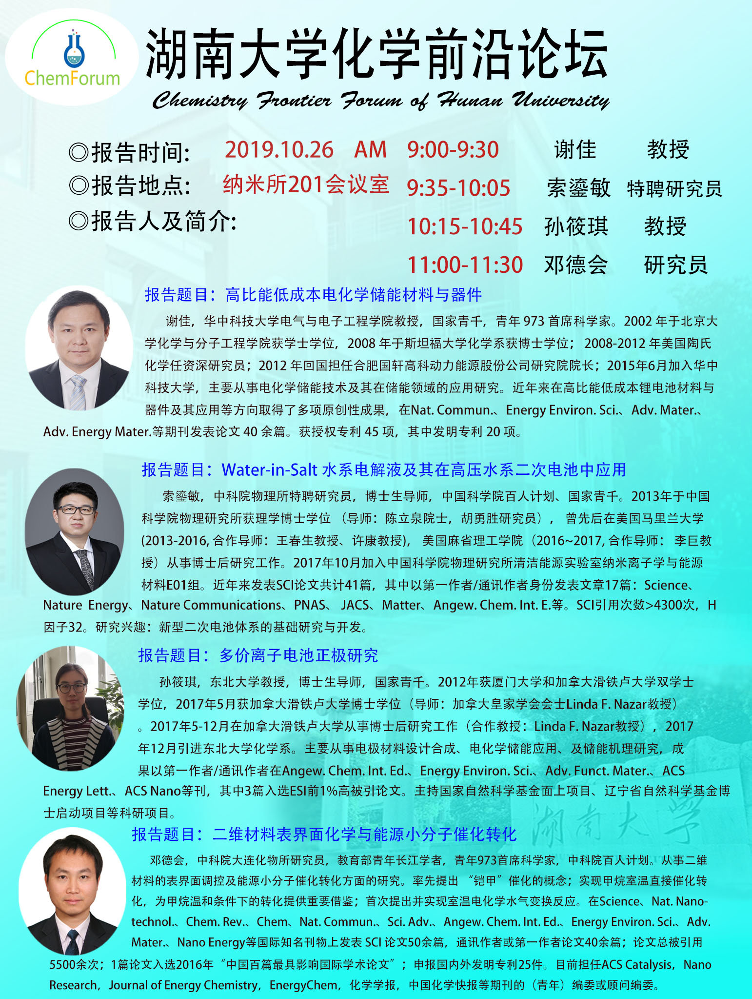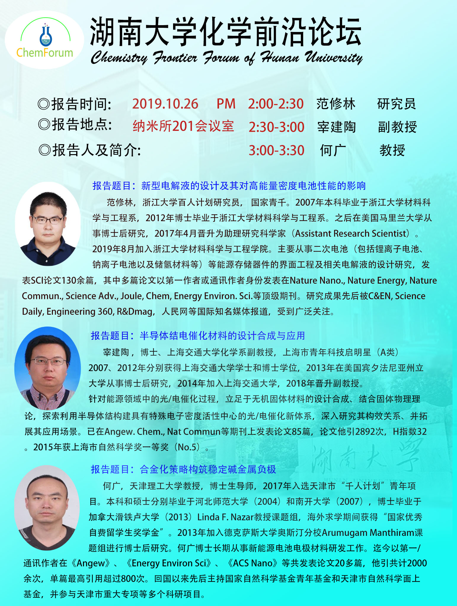 2019年10月26日永利集团248cc登录化学前沿论坛